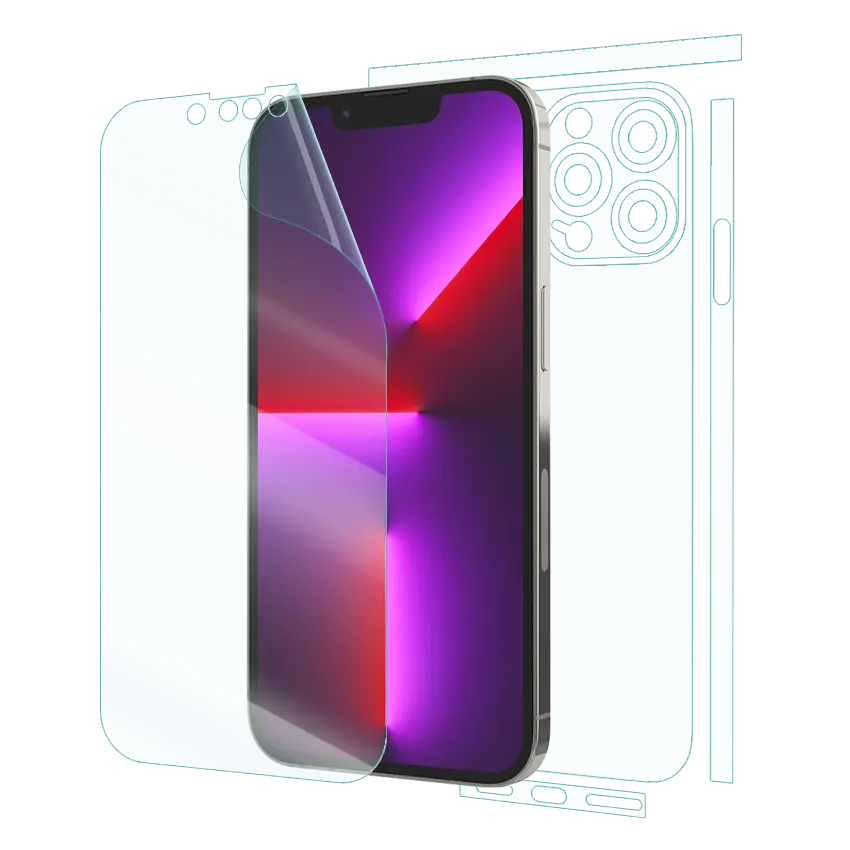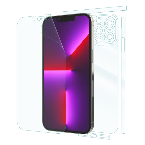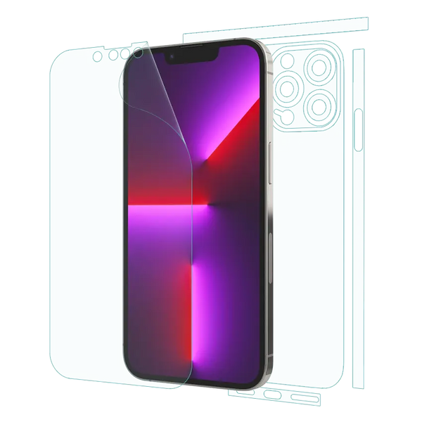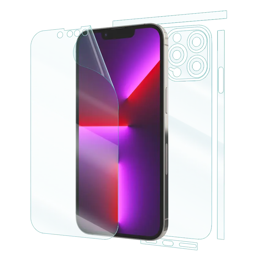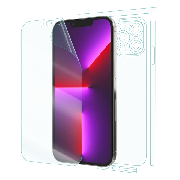 iPhone 13 Pro Max offers 360° protection with ultra-clear or matte finish. This thin, self-healing film covers both screen and back, resists scratches, and preserves device feel. Easy, bubble-free installation. Compatible with most cases.