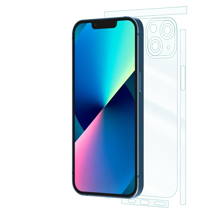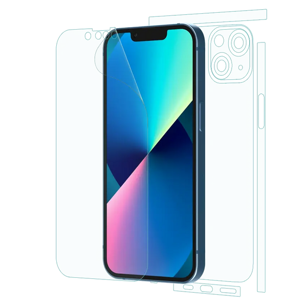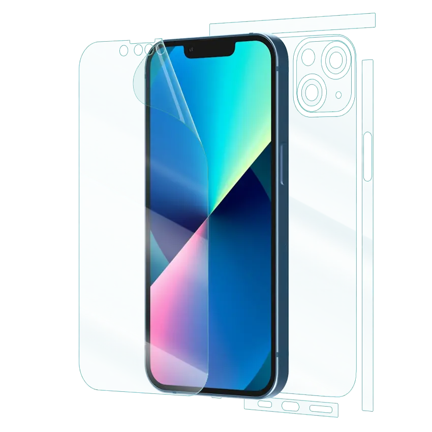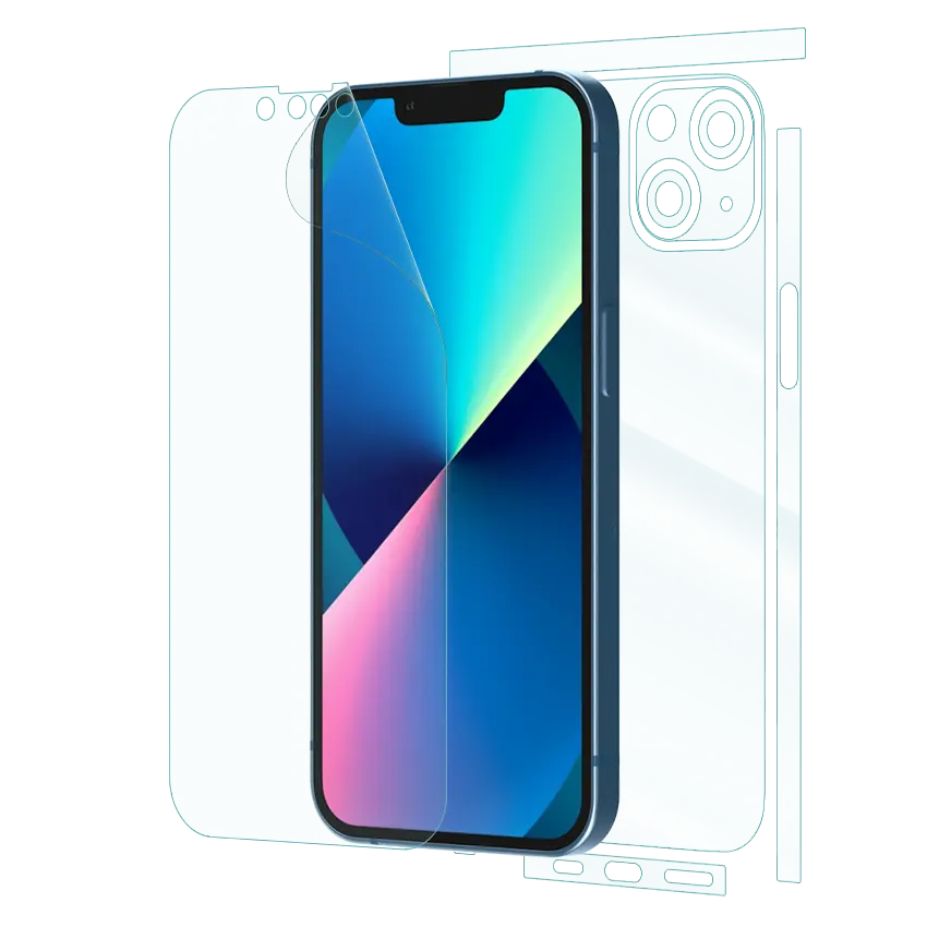 iPhone 13 Mini offers 360° protection with ultra-clear or matte finish. This thin, self-healing film covers both screen and back, resists scratches, and preserves device feel. Easy, bubble-free installation. Compatible with most cases.