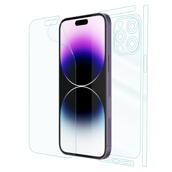 iPhone 14 Pro Max offers 360° protection with ultra-clear or matte finish. This thin, self-healing film covers both screen and back, resists scratches, and preserves device feel. Easy, bubble-free installation. Compatible with most cases.