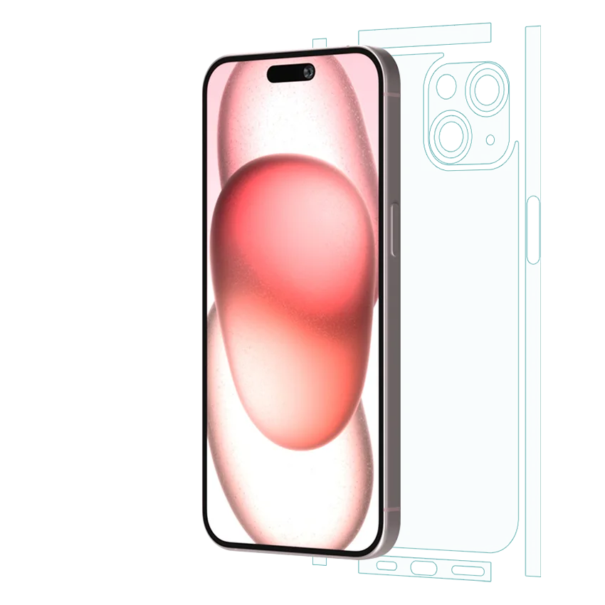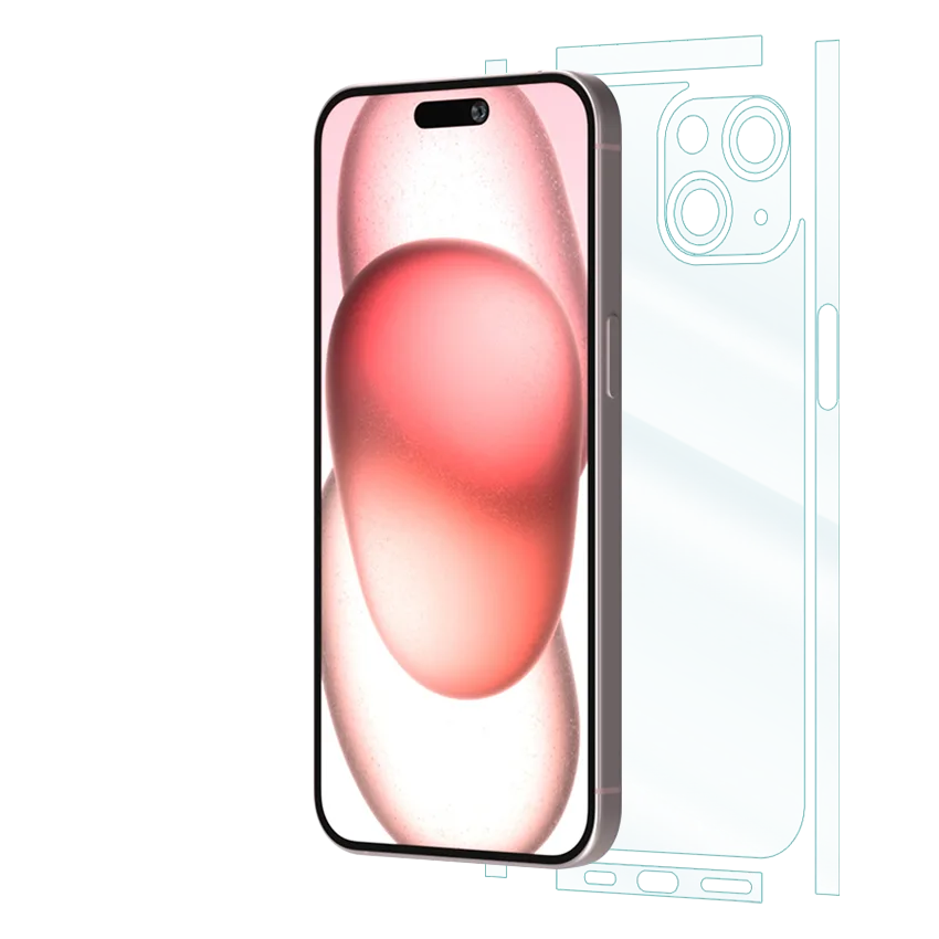 iPhone 15 Plus offers 360° protection with ultra-clear or matte finish. This thin, self-healing film covers both screen and back, resists scratches, and preserves device feel. Easy, bubble-free installation. Compatible with most cases.